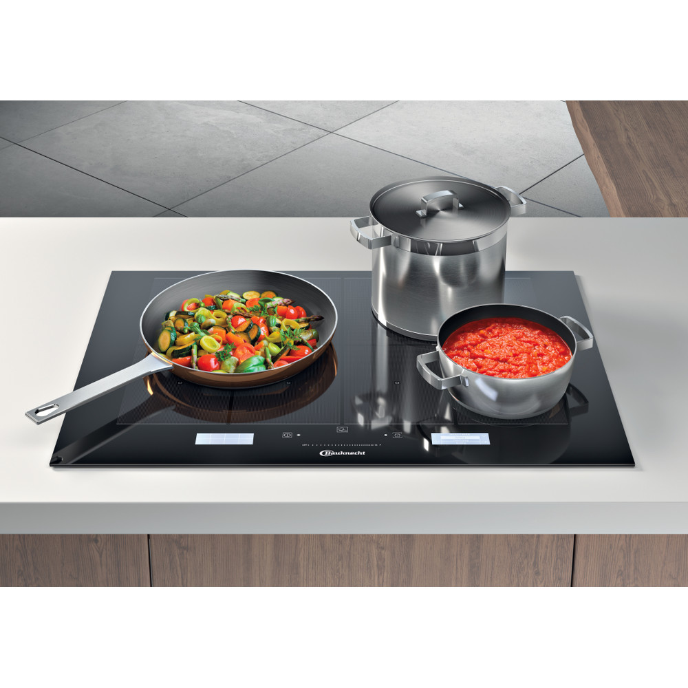 Die Vorteile dieses Elektro-Kochfelds/-fläche von Bauknecht im Überblick: Dank der innovativen Induktionstechnologie wird die Wärme direkt am Topfboden erzeugt – und das erst, wenn der Topf auf dem Feld steht. Die Hitze ist schnell regelbar, ähnlich wie bei Gaskochfeldern. (4 + 0) Kochzonen. Elektrischer Anschluss. 8 Induktions-Kochzonen. Variables Kochen dank FlexiCook. Mehrere Kochzonen werden zusammengefasst, um Platz für Töpfe und Pfannen jeder Grösse zu bieten. Steuerung über innovative Slider, mit denen sich die Hitzezufuhr für jede Kochzone auf einen Streich präzise regulieren lässt. Einfach zu reinigen.